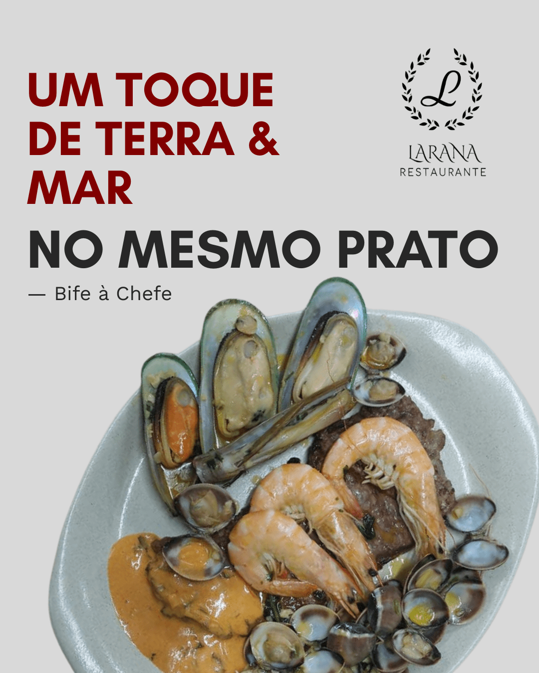 - Bife à Chefe(vazia com molho de camarão e mariscos)
